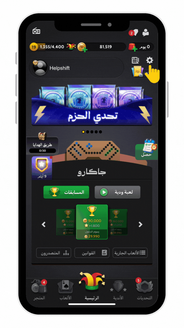 1. أنقر على أيقونة الإعدادات المتواجدة في الصفحة الرئيسية.