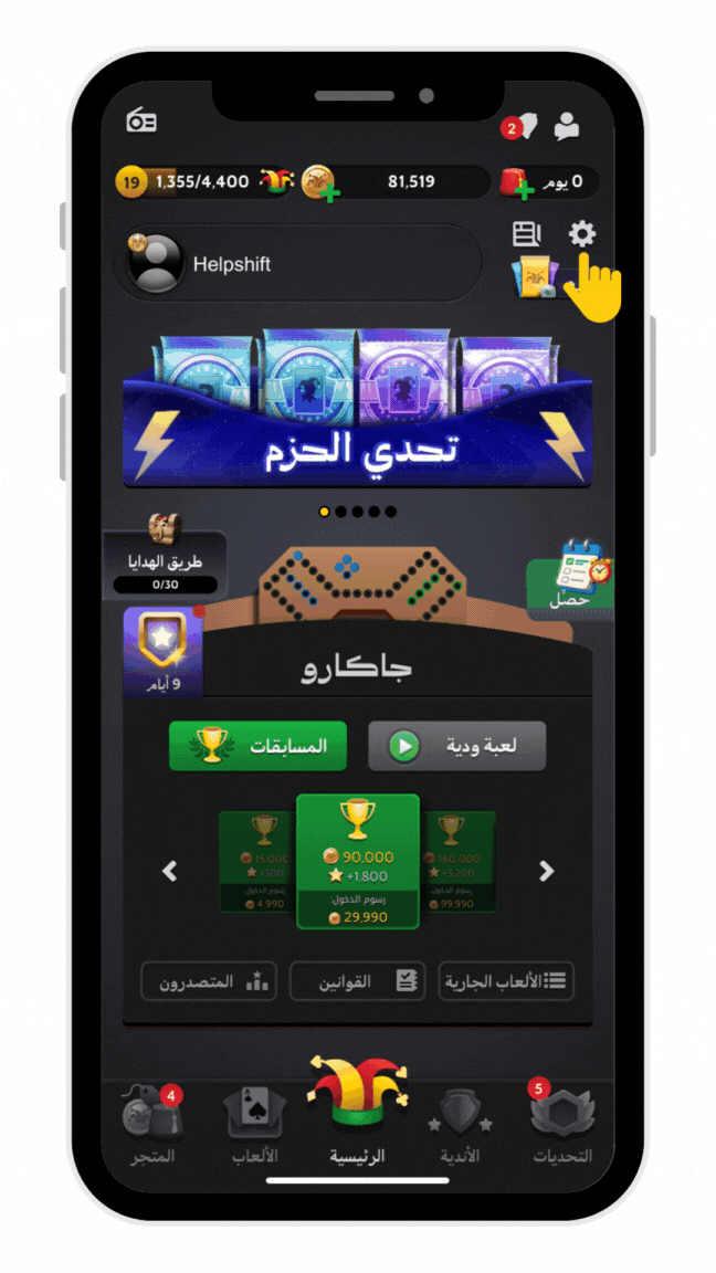 من الصفحة الرئيسية أنقر على "الإعدادات".