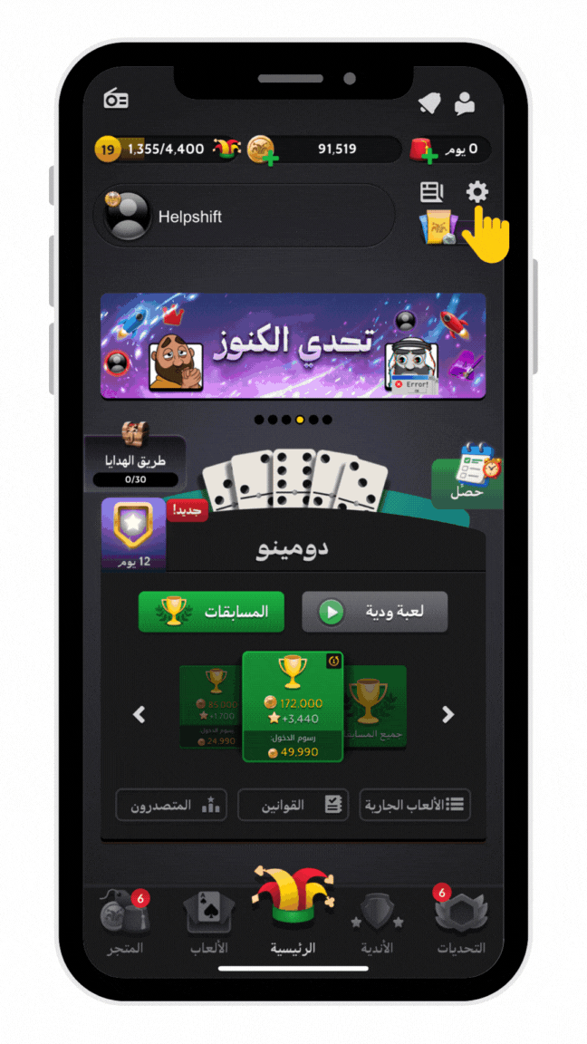 - من القائمة الرئيسية قم بالضغط على أيقونة الإعدادات.